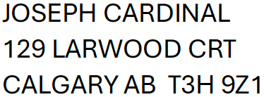 The postal code appears two spaces after the abbreviation for the province, on the same line.